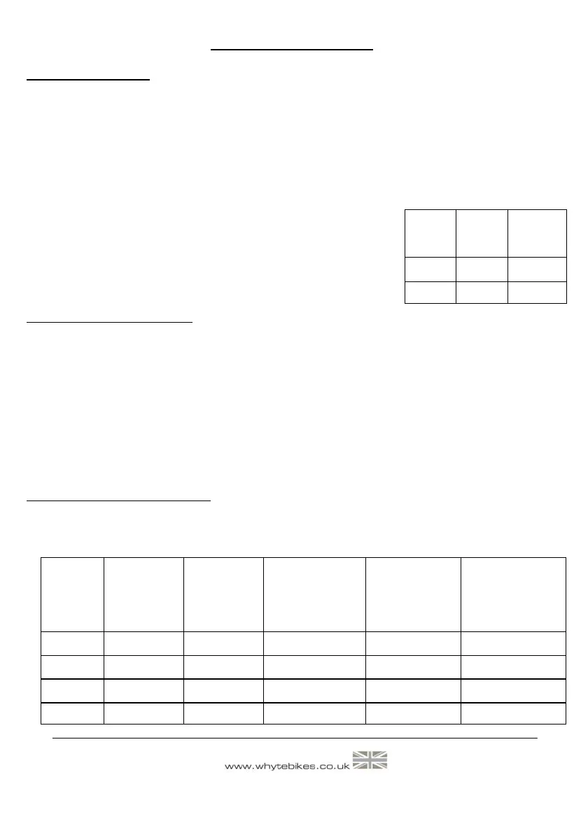 the bike in the normal riding position. See the table on the right for our recommendation of front