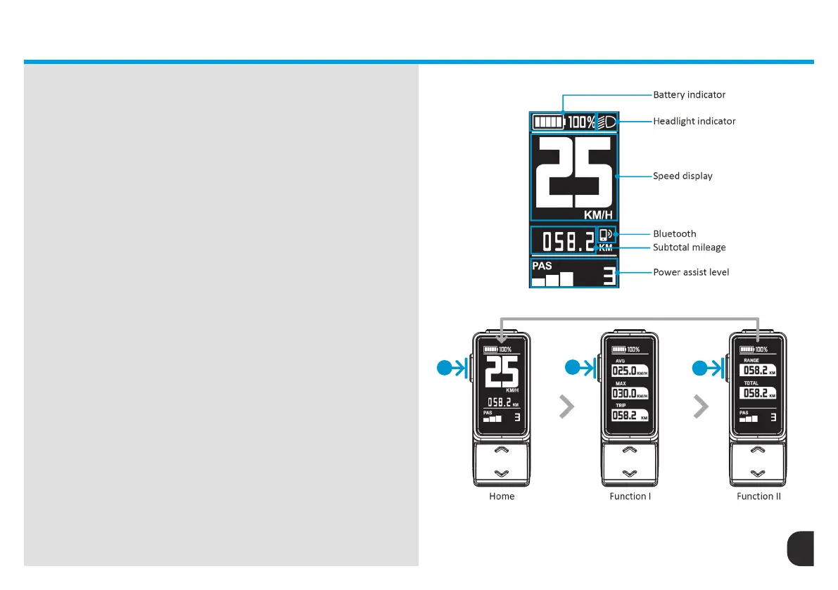 showing Home, Function I, and Function II screens.