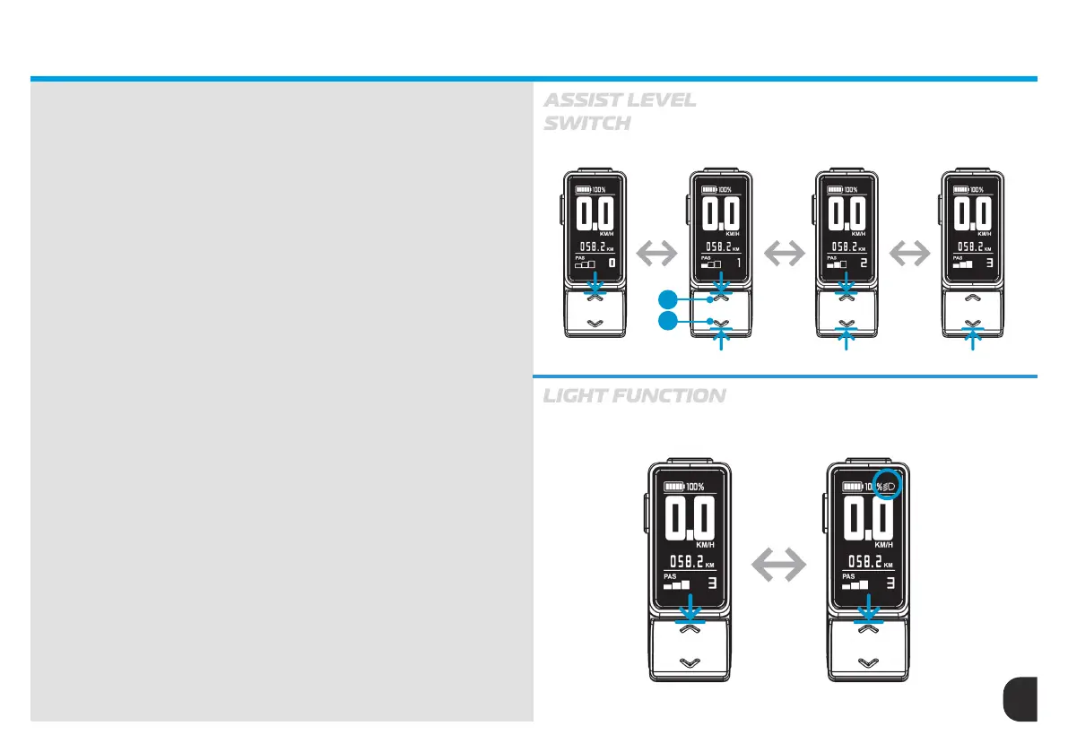 If the e-bike is equipped with a front or rear light, from the home screen