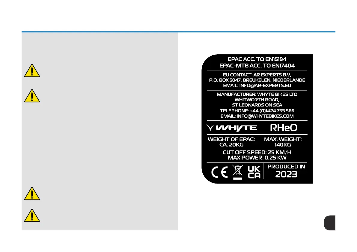 WARNING: It is critical that your Whyte bike isn’t ridden under