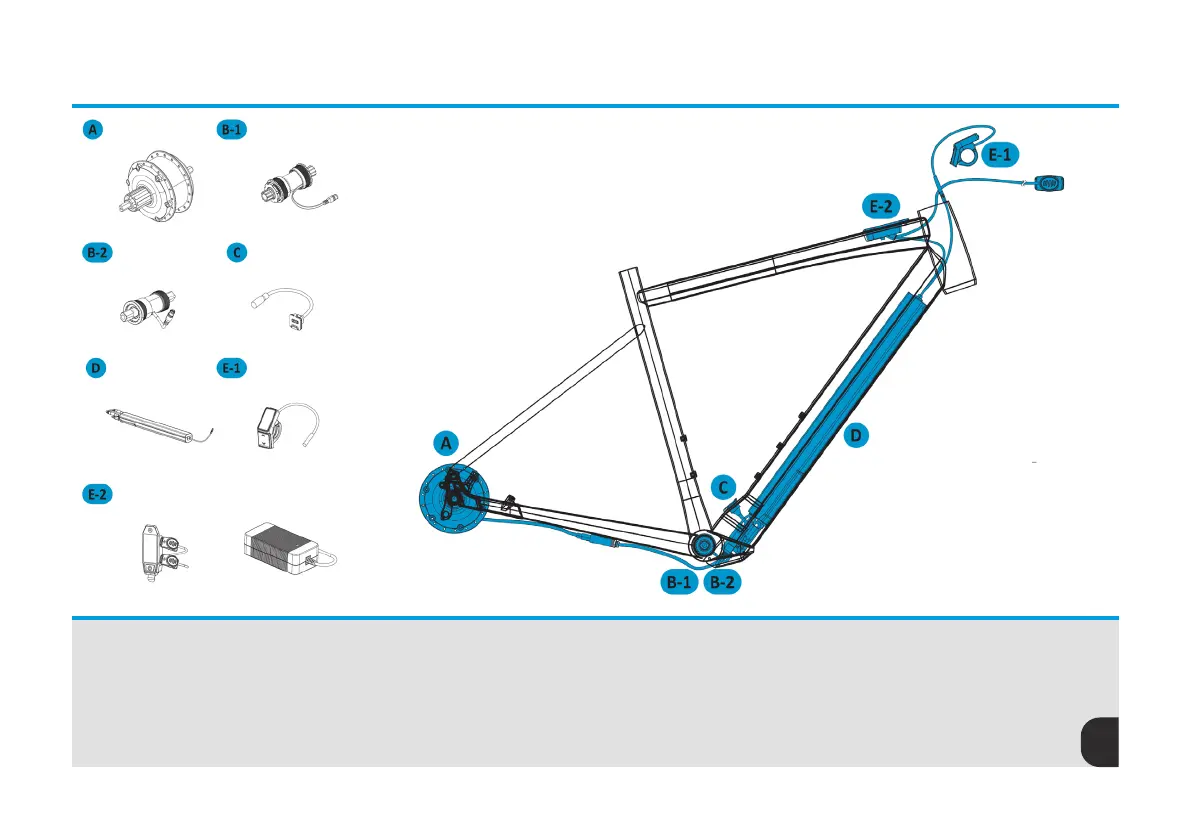 Motor - Intube Battery Set - Torque Sensor - HMI (mounted) - HMI (integrated) - Battery Charger.