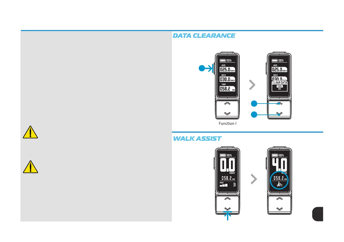 When bike is stationary, press and hold the down button (5) to activate Walk