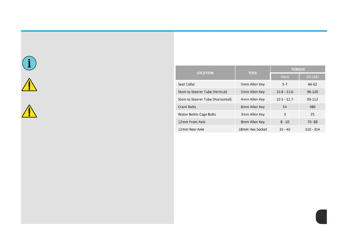 what is required to operate this bicycle. Correct tightening force