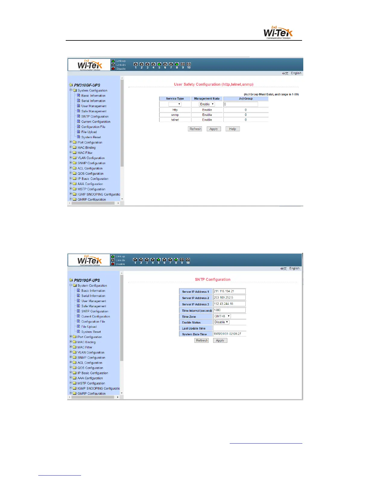 (5)SNTP configuration page