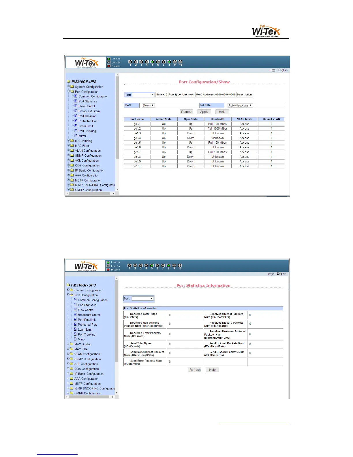 Figure 19 shows the port statistics information page.To view a particular port, select the