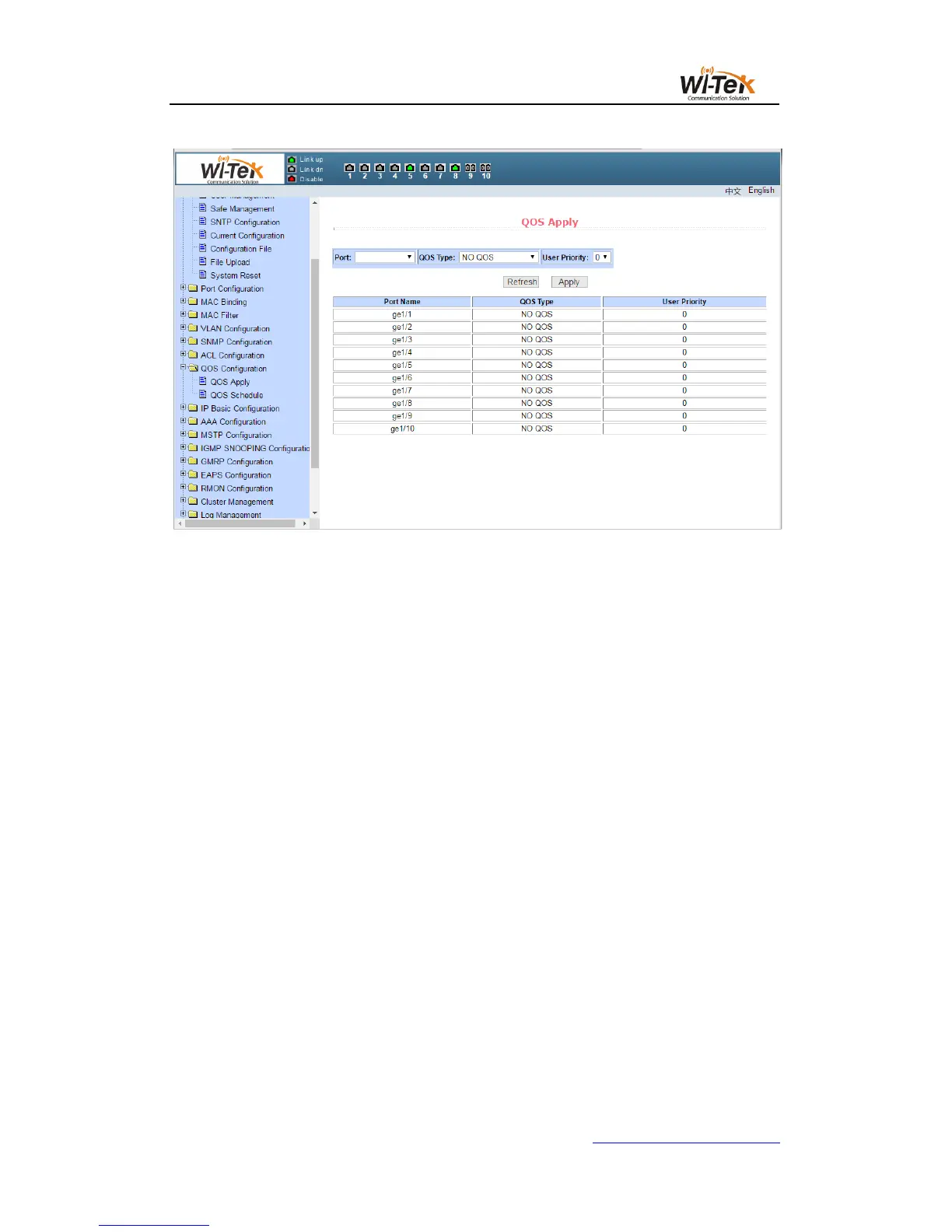 port QOS scheduling type, but also can modify the queue priority. The list is the real-time