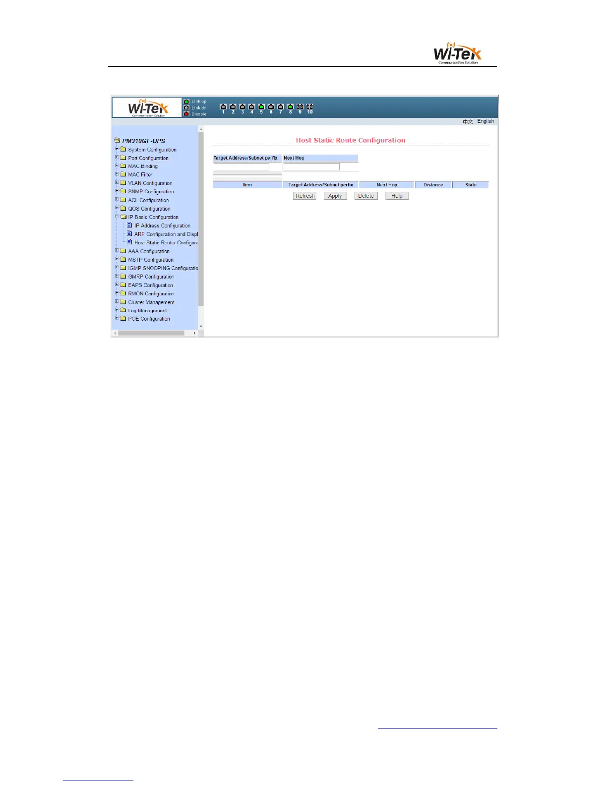 Pic 46 host static route configuration page