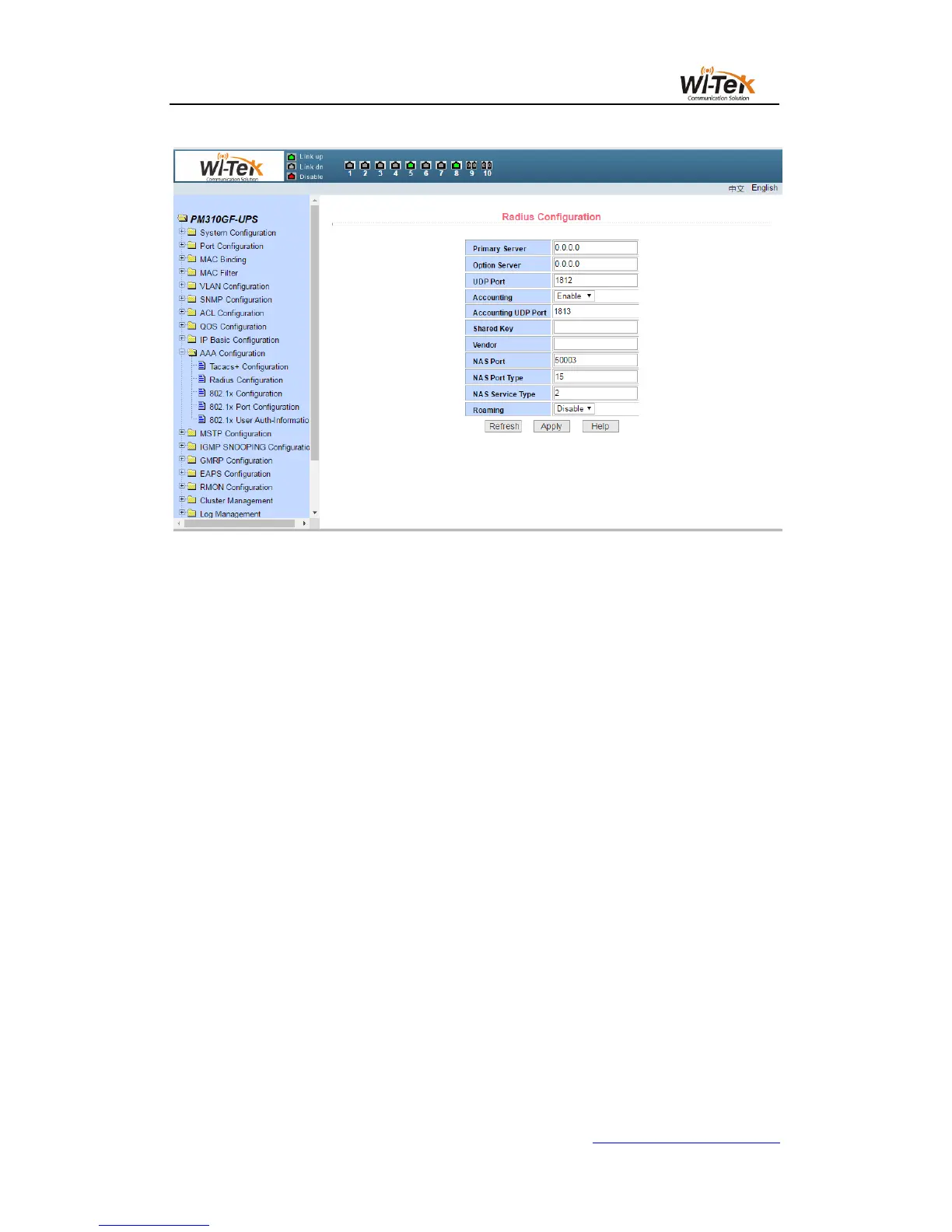 Figure 49 shows the 802.1x configuration page. You can configure 802.1x-related