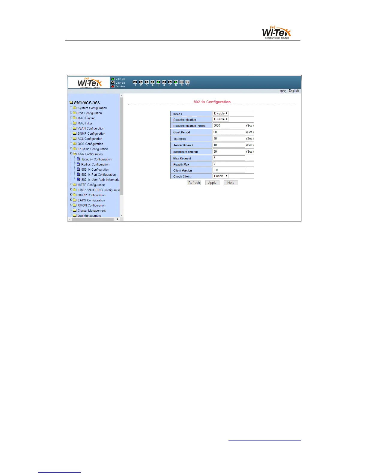 configuration of each port.The 802.1x port mode includes four types: N / A status, Auto state,