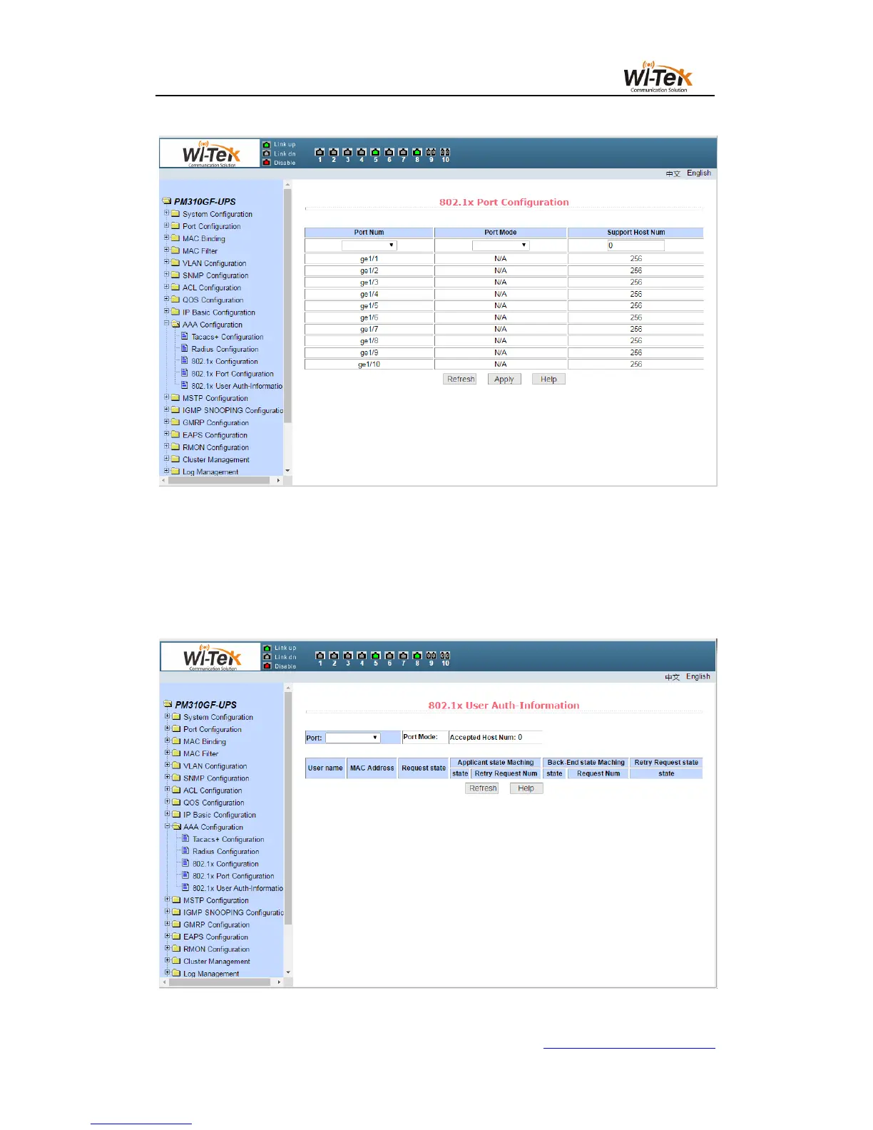 Figure 51 shows the 802.1x user auth-information page. You can view the status