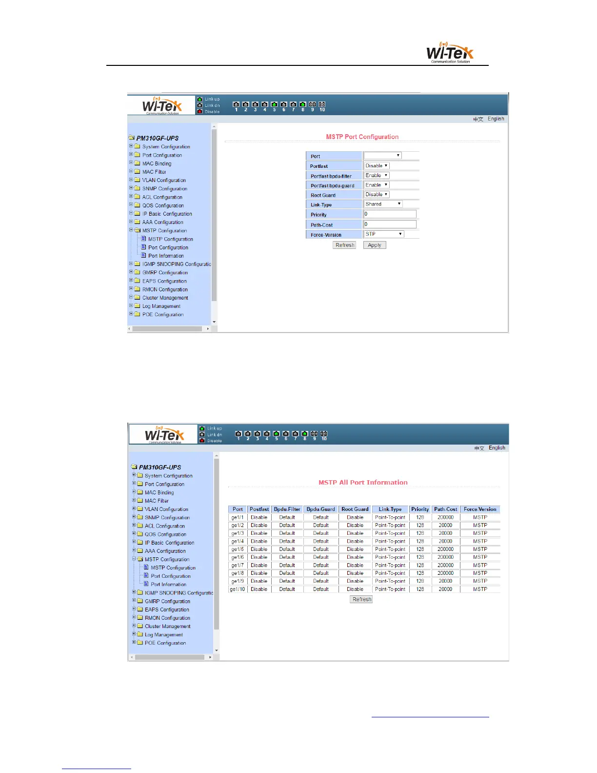 Figure 54 shows the MSTP port information page. You can view the port MSTP status on