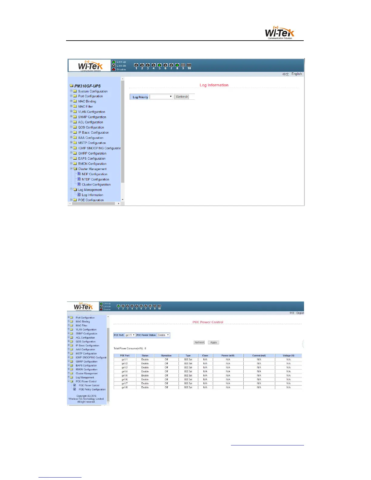 POE device total power (to be updated), POE single port power (to be updated), POE on or