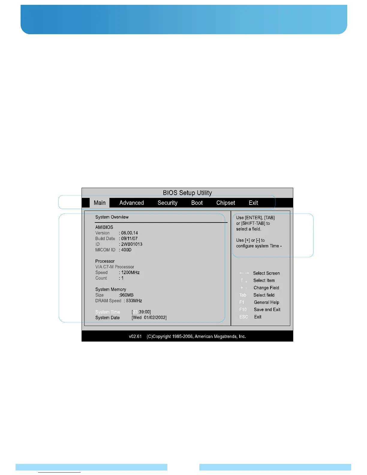 ② The Bios Setup screen appears as below. If not, restart the product and press the “Del” key several times when