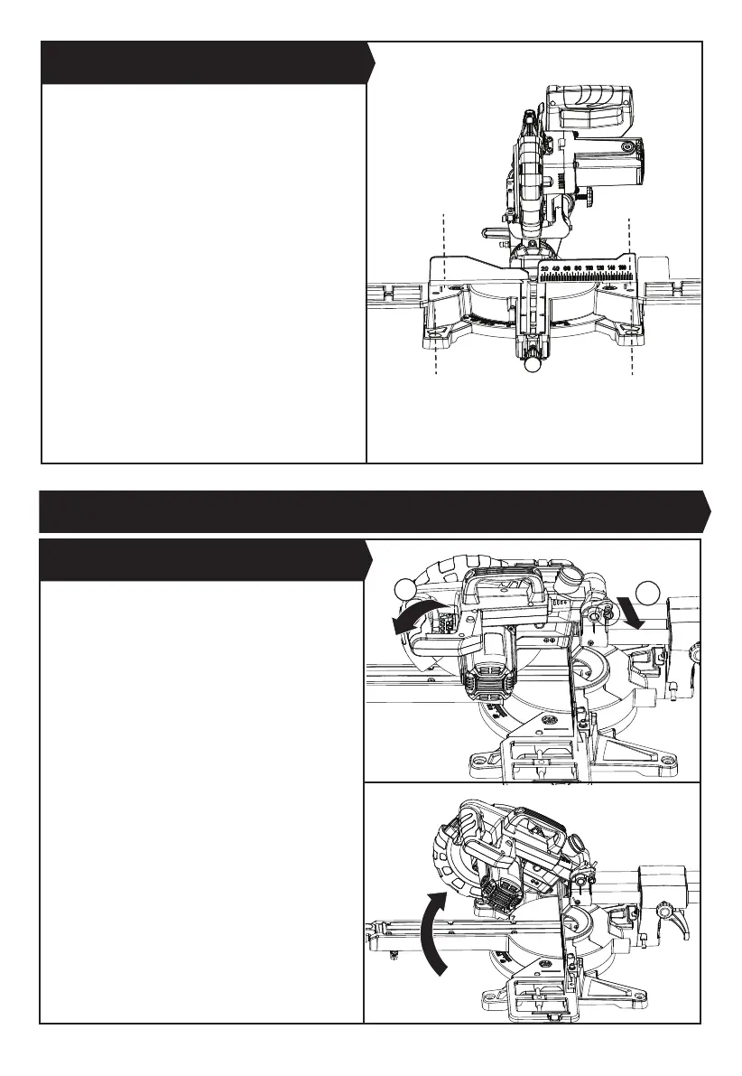 the saw head is locked in the down position. To release
