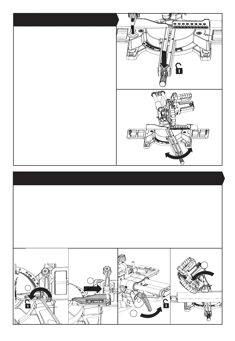 saw blade is facing to the operator). To adjust the bevel angle, follow the steps below:
