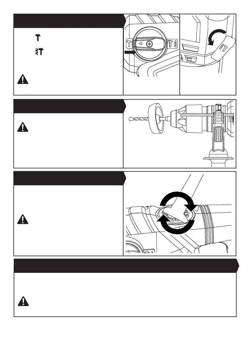 If the drill bit or chisel becomes jammed in the workpiece, the clutch will activate stopping the tool spindle. This is normal.