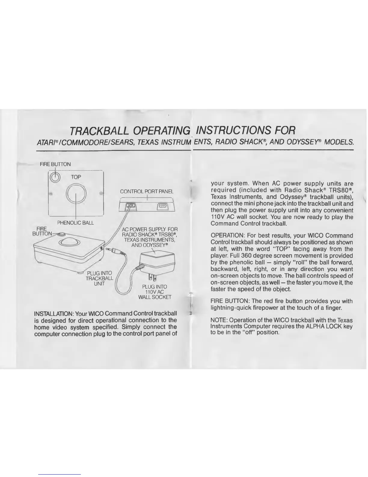 TRACKBALL OPERATING INSTRUCTIONS FOR