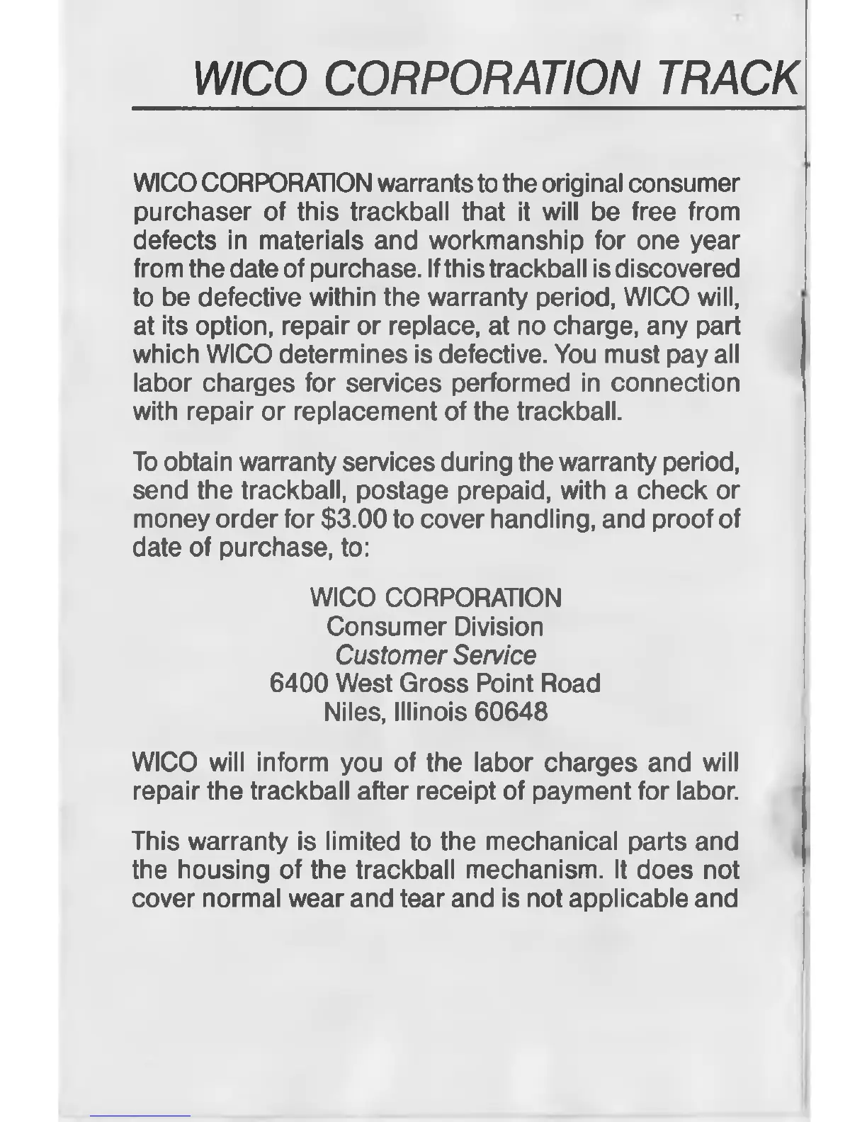 purchaser of this trackball that it will be free from