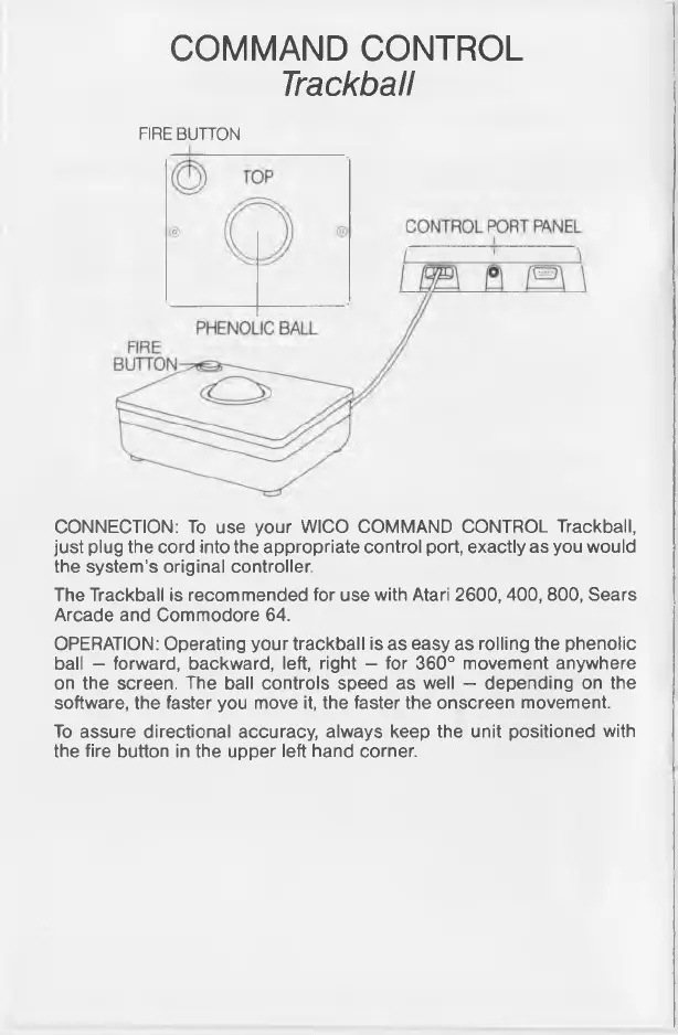 CONNECTION: To use your WICO COMMAND CONTROL Trackball,
