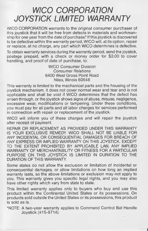 ANY EXPRESS OR IMPLIED WARRANTY ON THIS JOYSTICK. EXCEPT