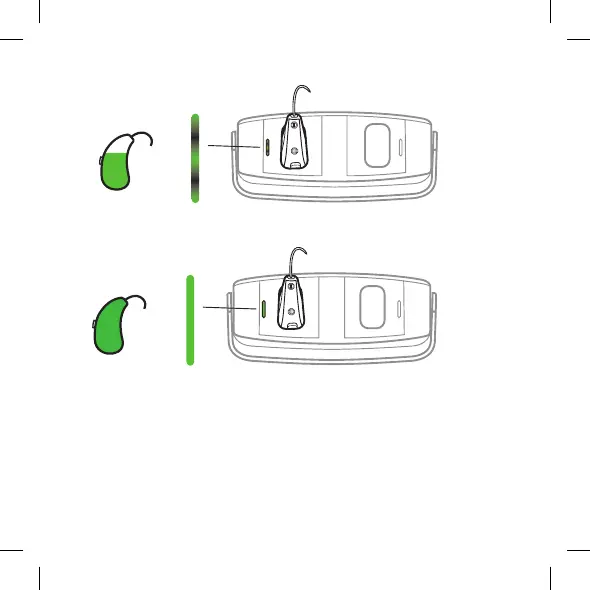 助听器充电 100% 后,指示灯将呈绿色常亮