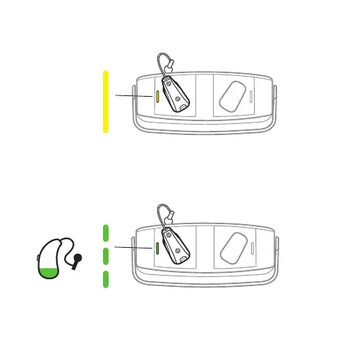 Pendant que le chargeur détecte l’aide auditive, le voyant est jaune