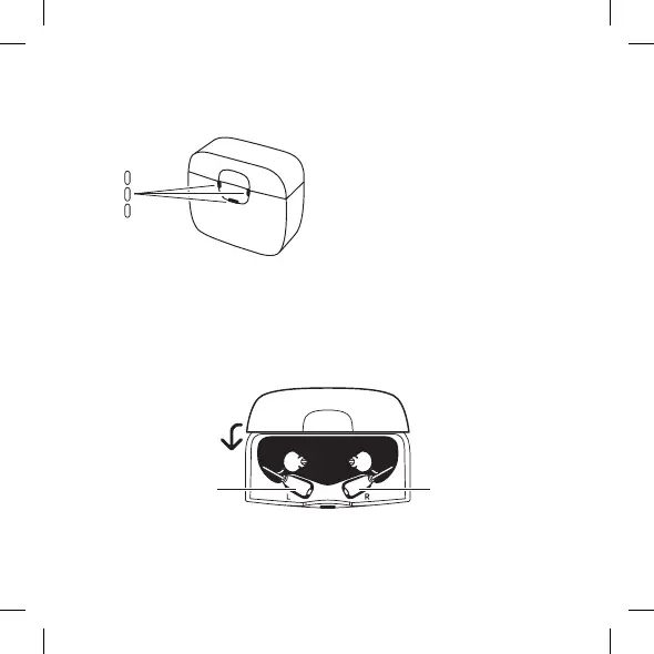 Placera försiktigt hörapparaterna i respektive laddningsfördjupning och