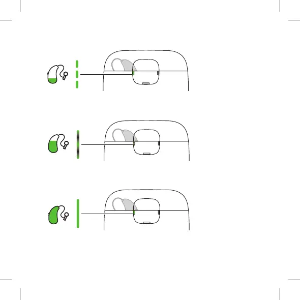 Merkkivalo vilkkuu vihreänä osoittaen, että kuulokojeen akku on lähes