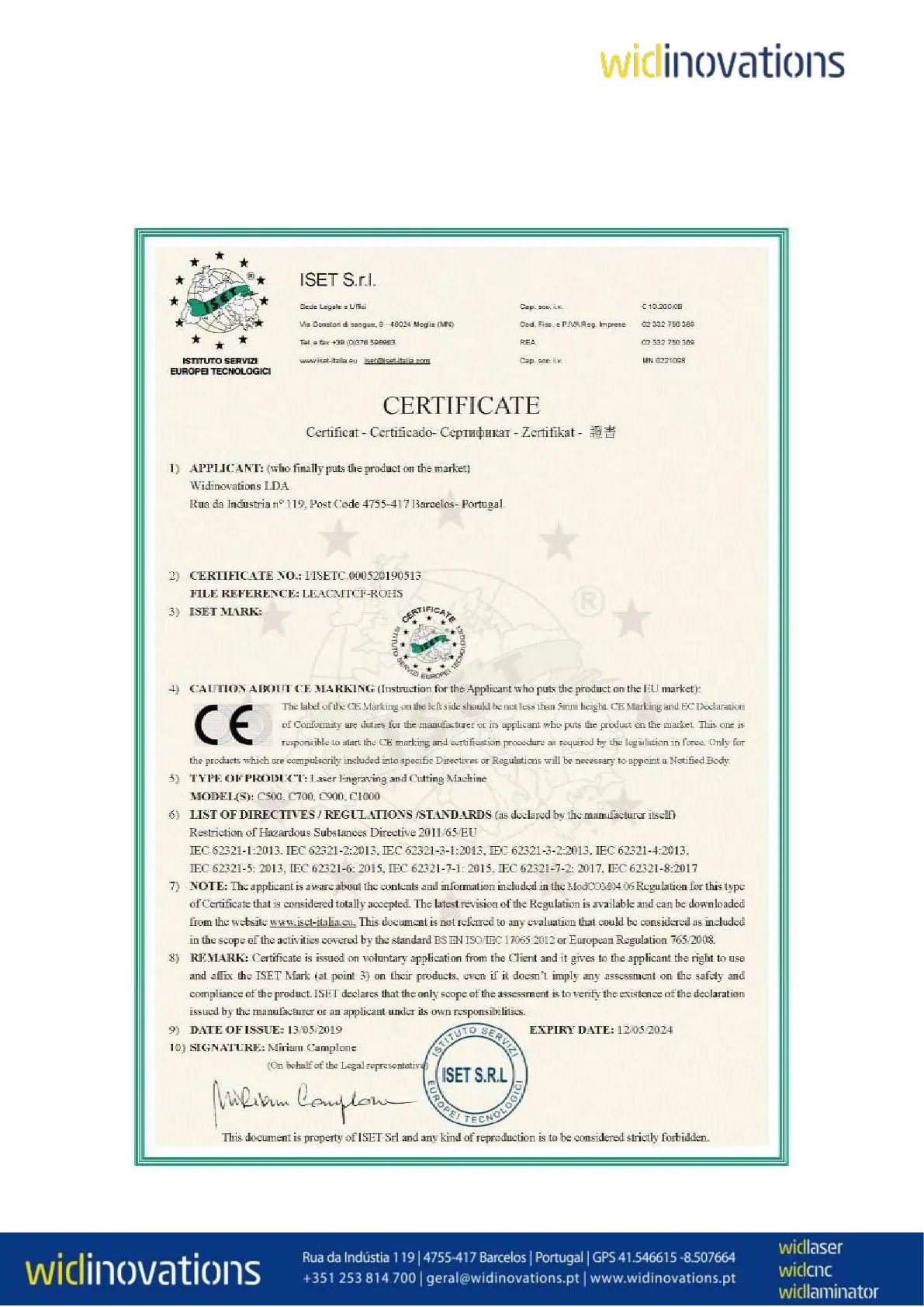 Widinovations Widlaser C500 - 8. ROHS certificate