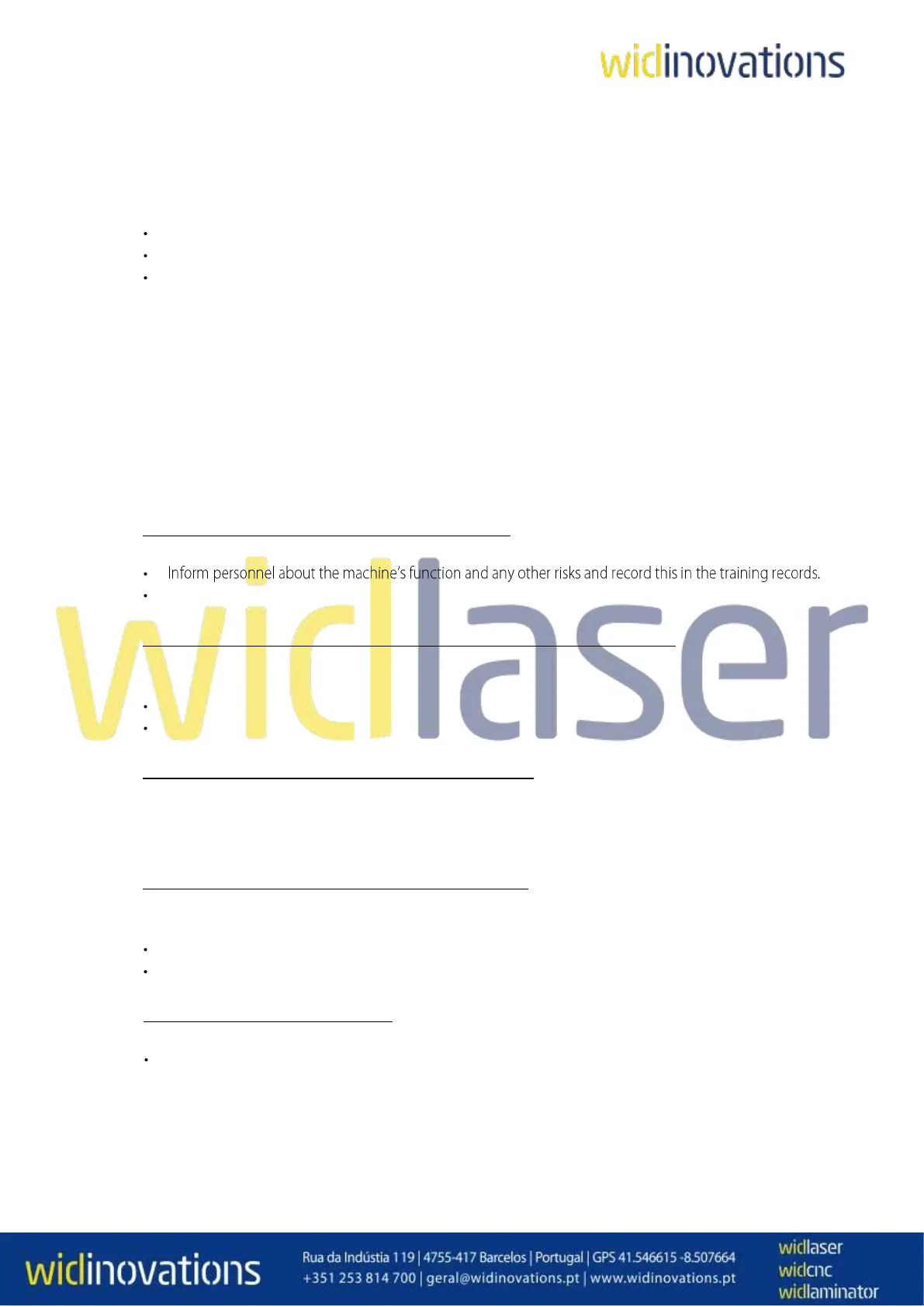 • Never try to modify or remove the safety devices or cover of the laser head!