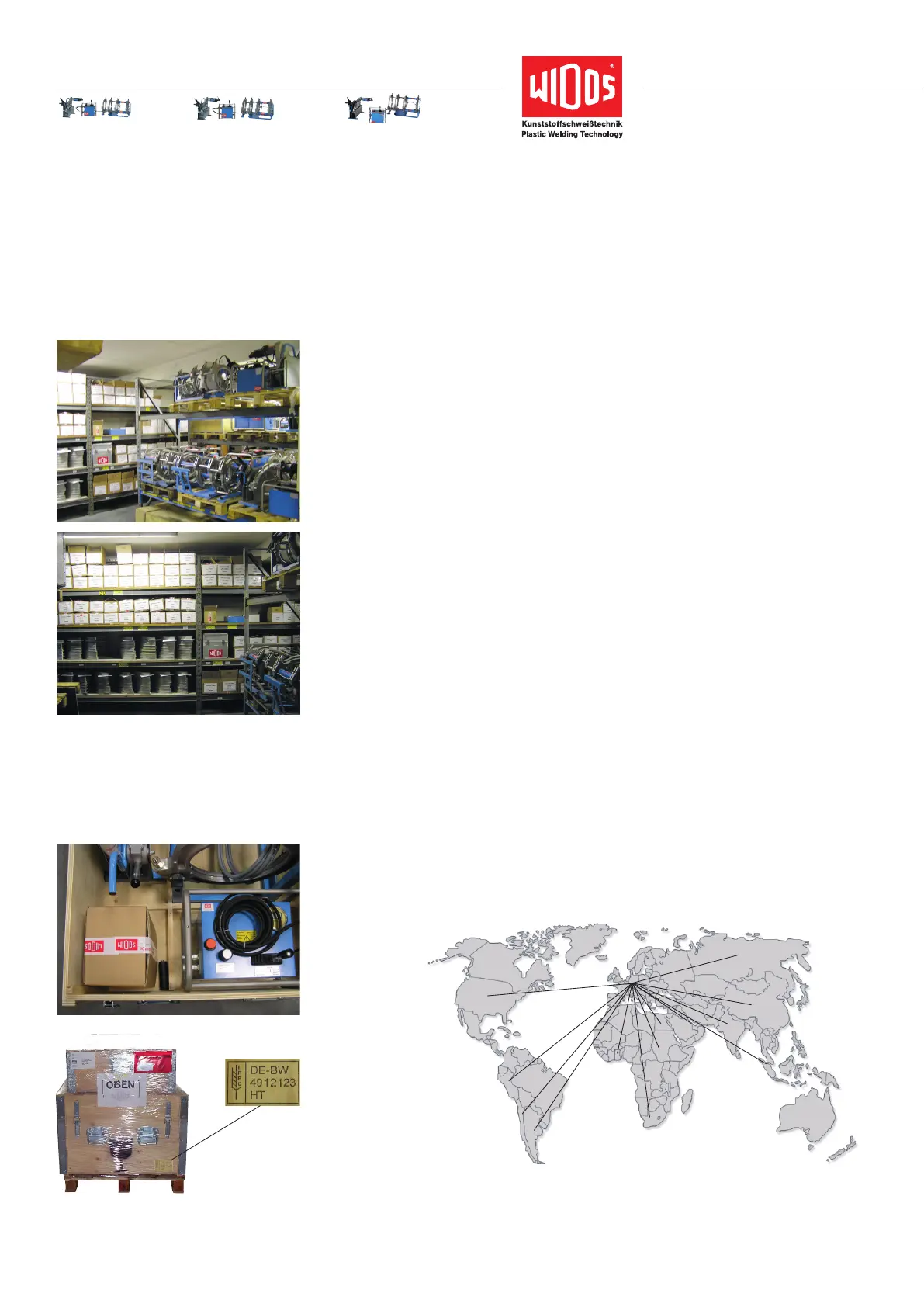 Alle Maschinen von WIDOS werden mit professioneller Verpackung schnell, kompakt und sicher per Luft, See oder