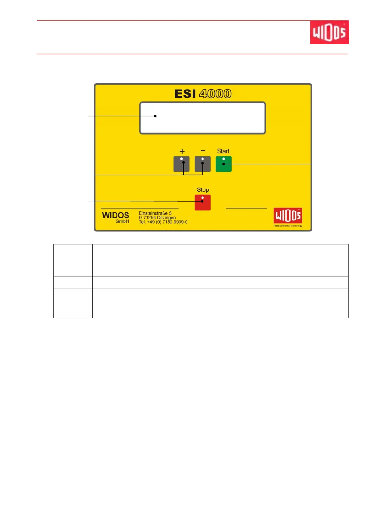 17 <Stop> - button, aborts the welding process