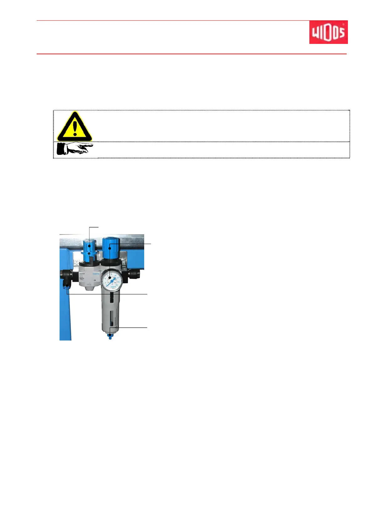 Press the pressure regulator button downwards (towards the housing). Thereby, it is