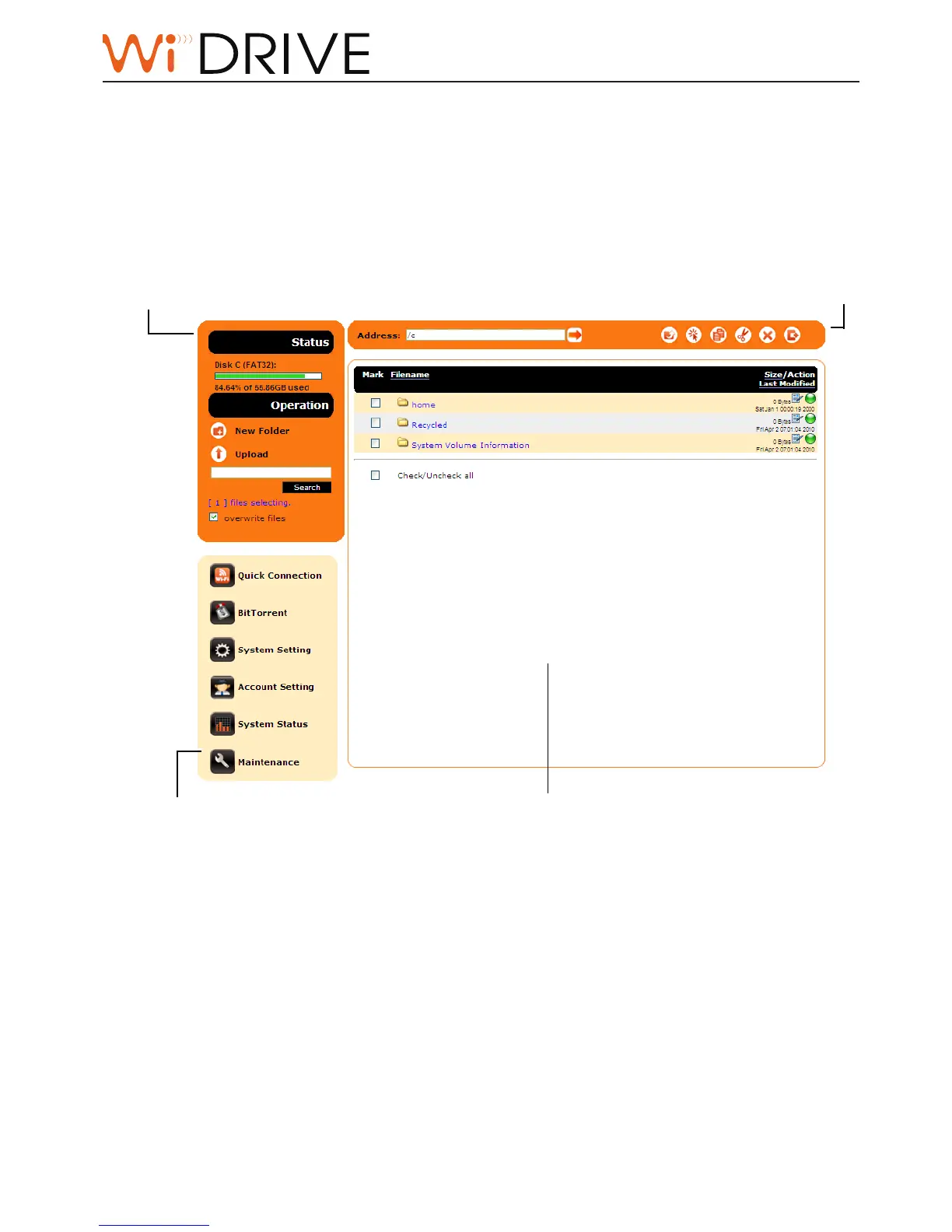 the selected le pool of your WiDRIVE.