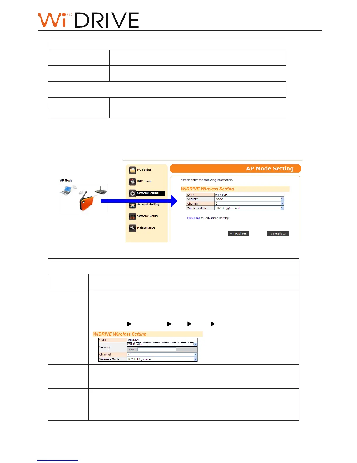 Your WiDRIVE performs as a wireless router in AP mode. Click on the AP Mode icon in the [Select