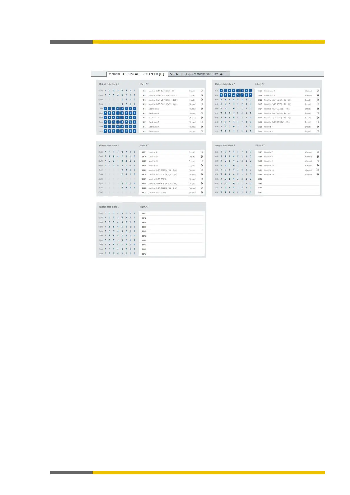 the total number of 50 bytes of data set 1 may be configured as direct gateway output values.