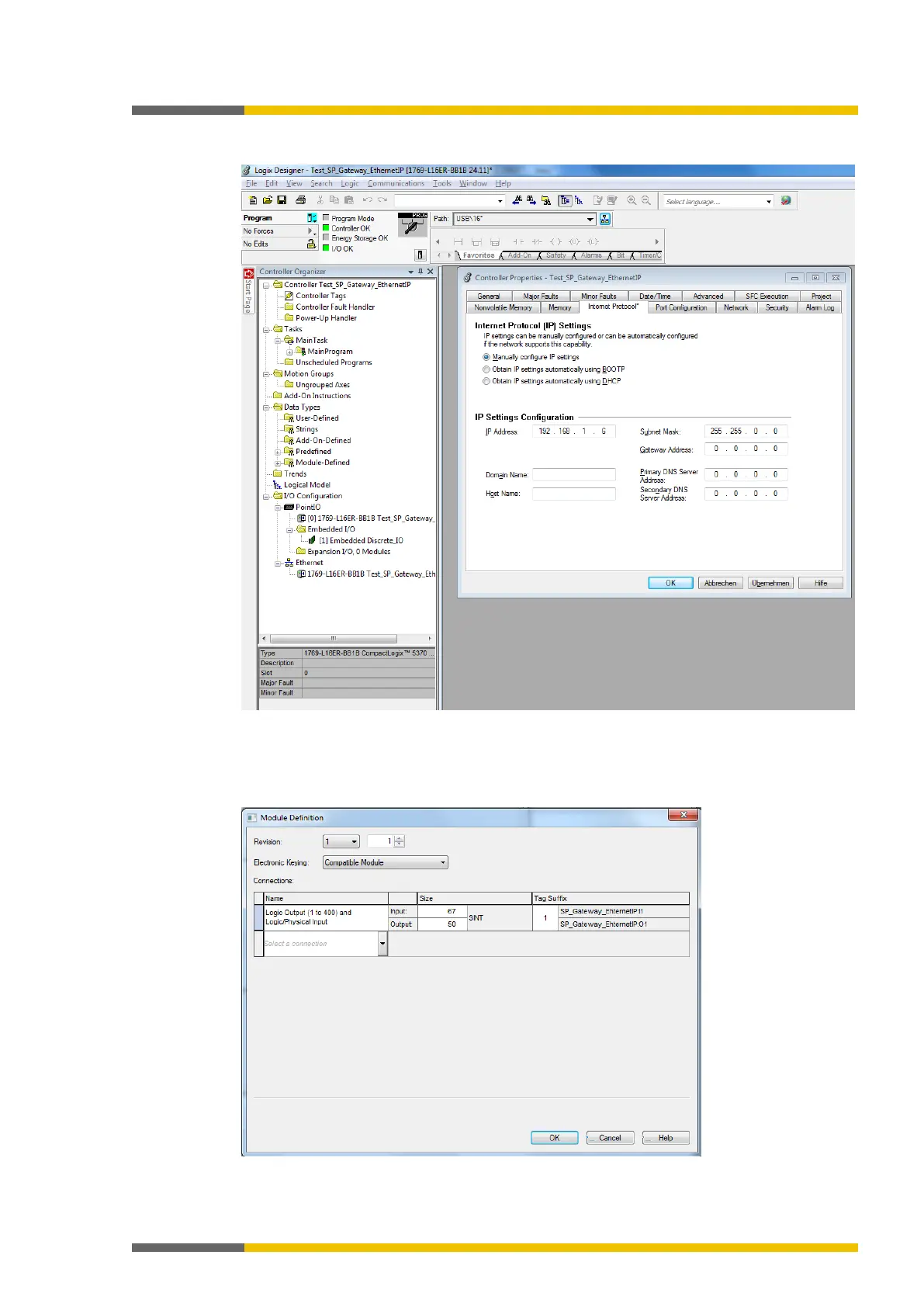 Illustration 18: IPv4 setting for the device in the Logix Designer