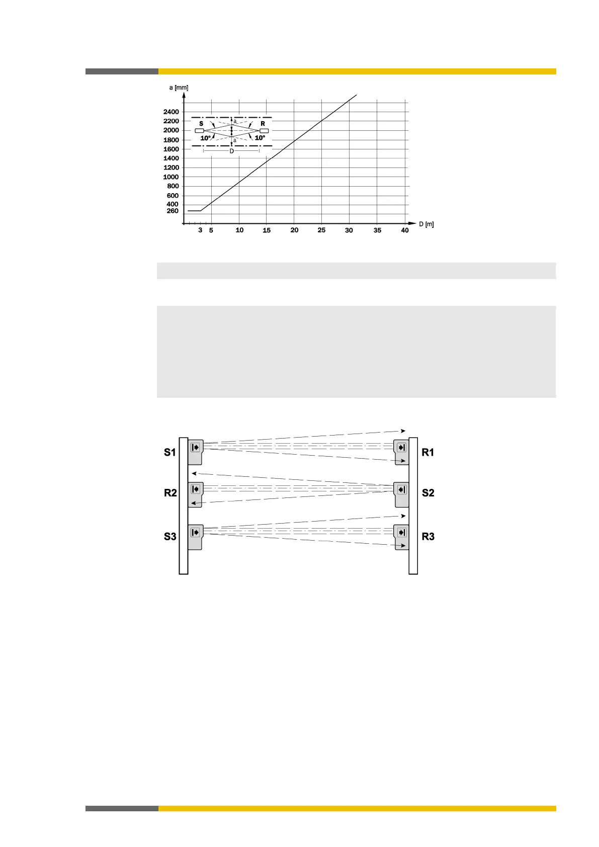 • If multiple single-beam safety light barrier pairs are used, the aperture angle of the sen-