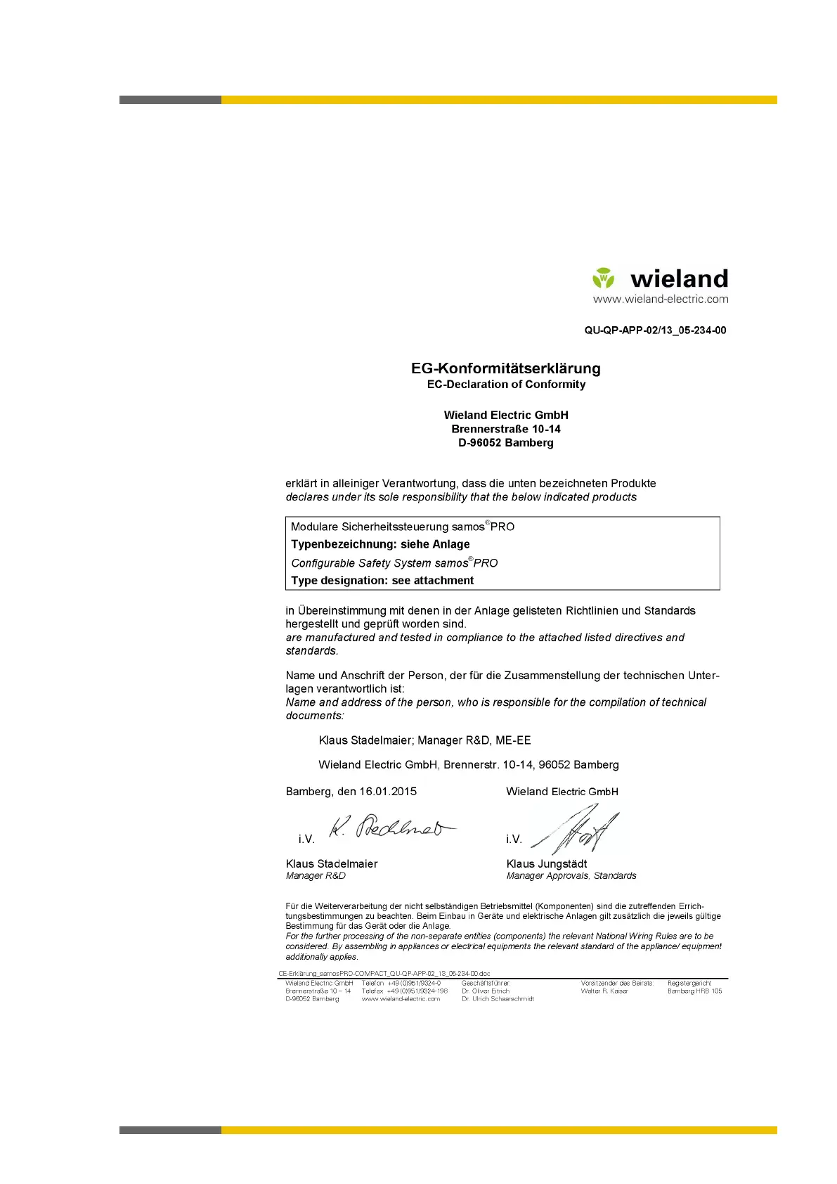 Wieland SP-SDIO - Appendix; Declaration of Conformity