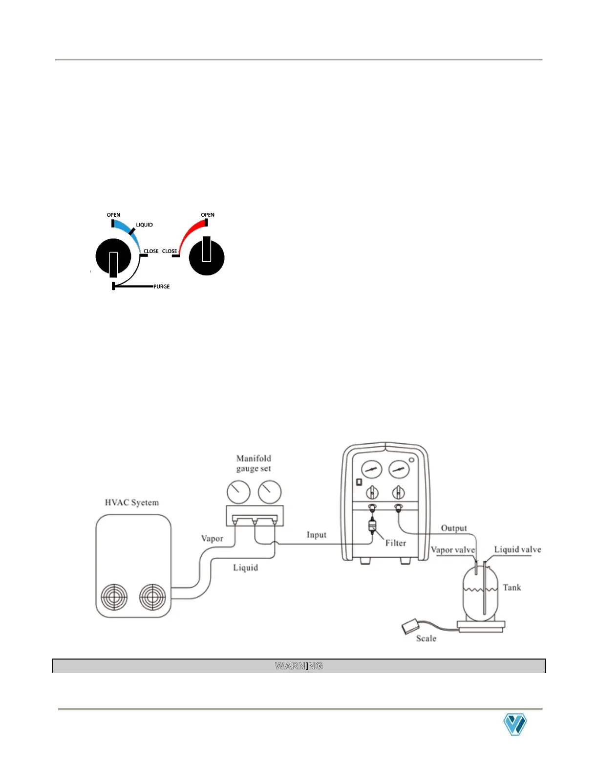 f) Close the valves on the recovery tank