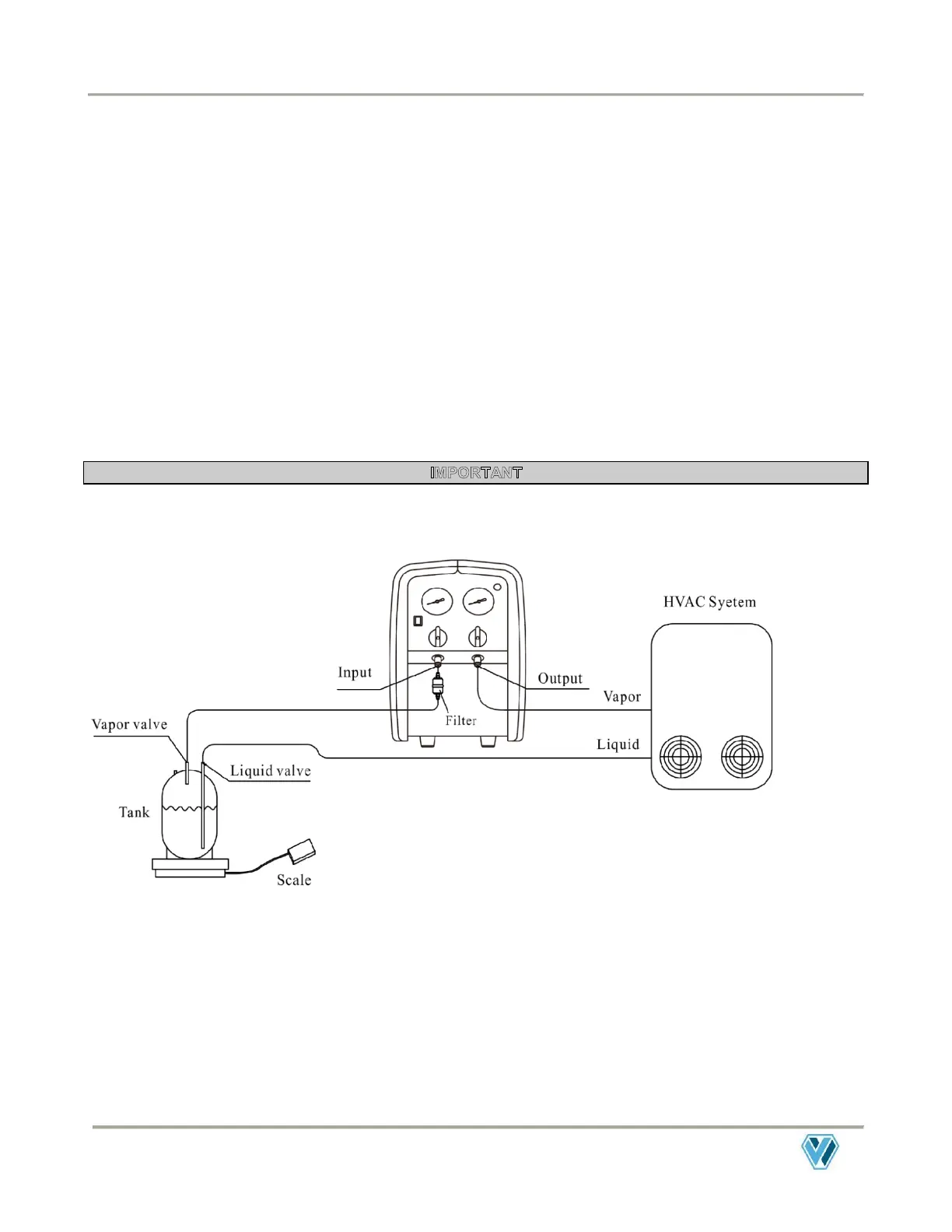 Before use, make sure that all the flexible hoses, the filter drier, the stocking cylinder and the recovery