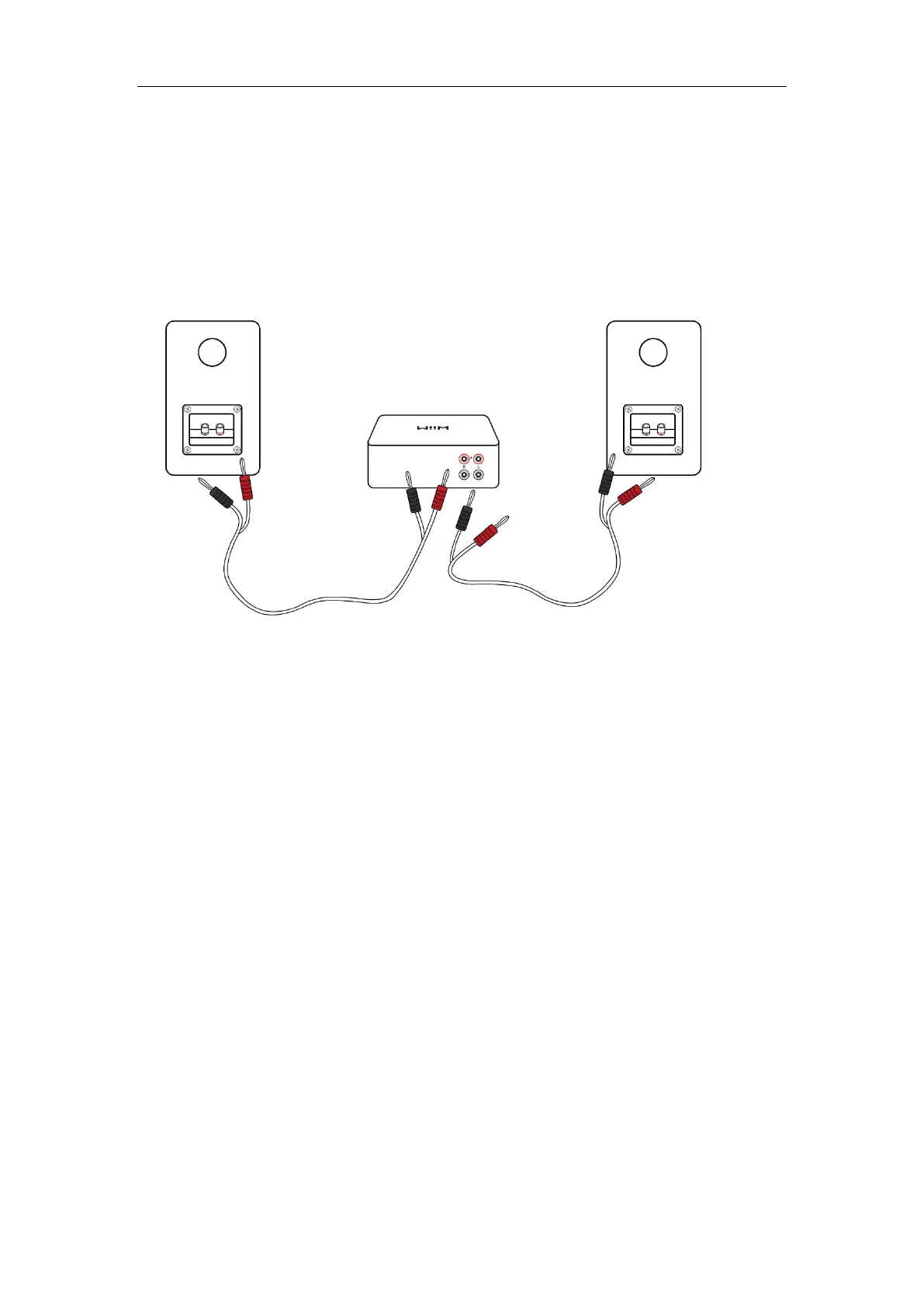 2. Use the other speaker cable to connect the right passive speaker to right (R)