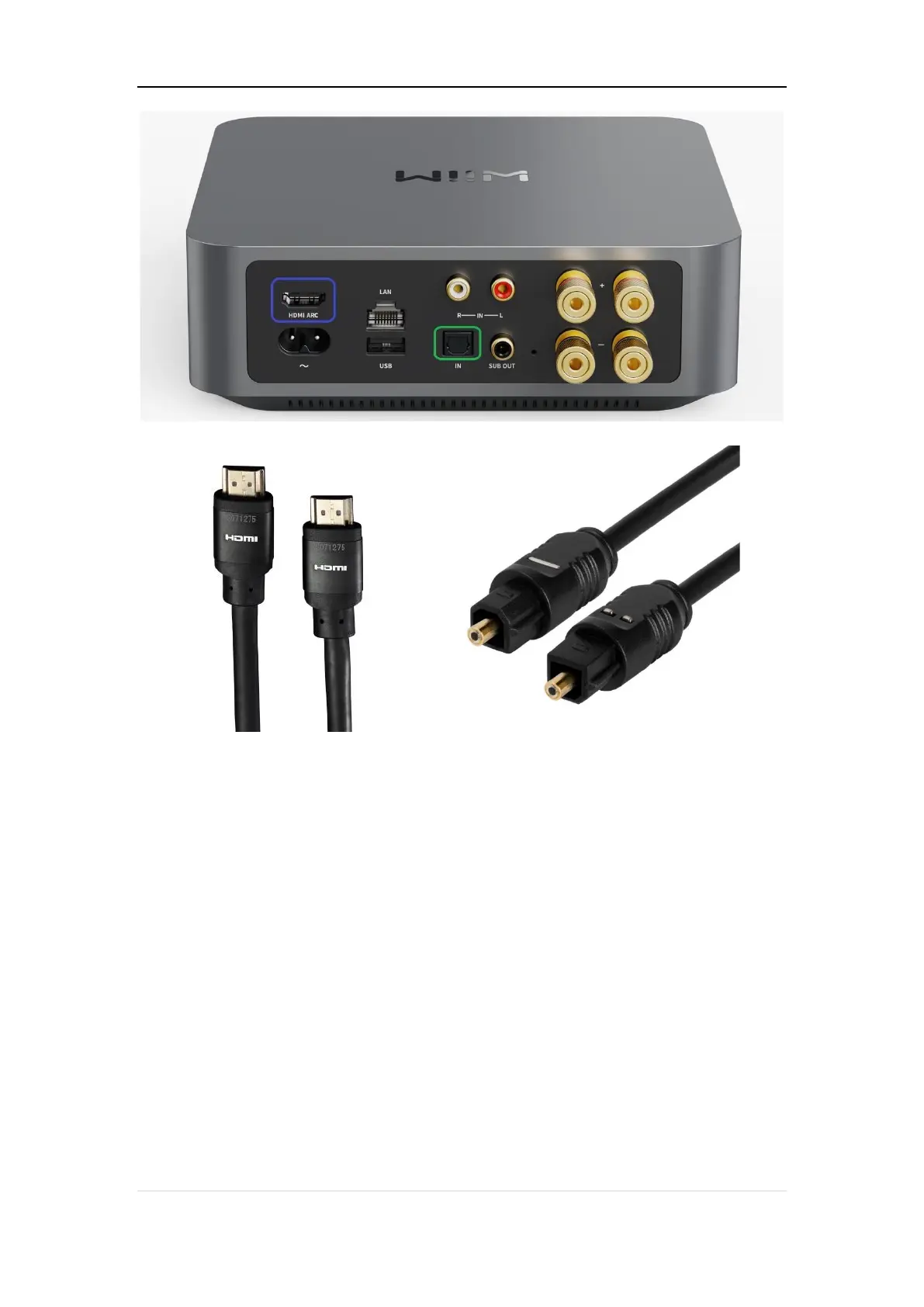 Steps to set up the WiiM Amp with the optical or HDMI IN are the same as Line-in, replacing