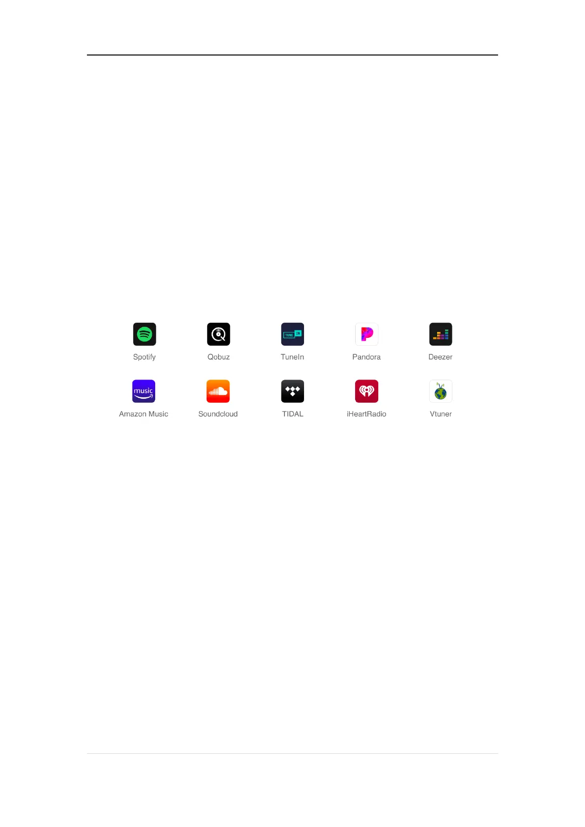 iHeartRadio, Tidal, Amazon Prime Music and Unlimited, SoundCloud, Qobuz, Pandora,