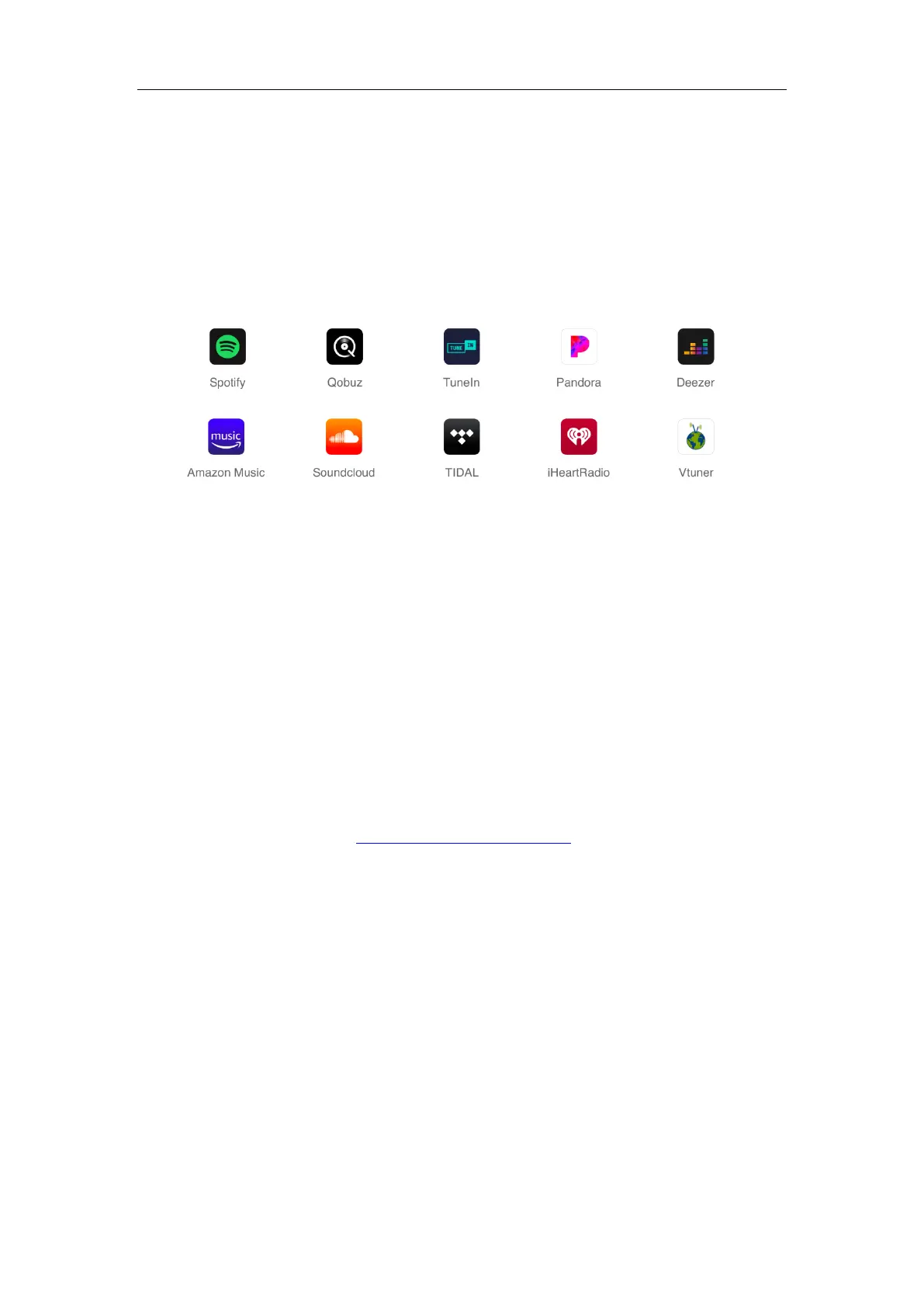 iHeartRadio, TIDAL, Amazon Music, SoundCloud, Qobuz, Pandora, Deezer, TuneIn, and