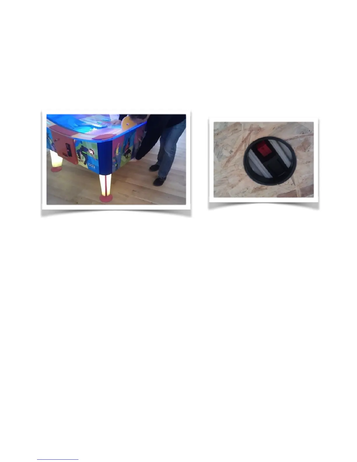PL: Urządzenie jest przeznaczone do gry w air hockey’a (cymbergaja). Gracze