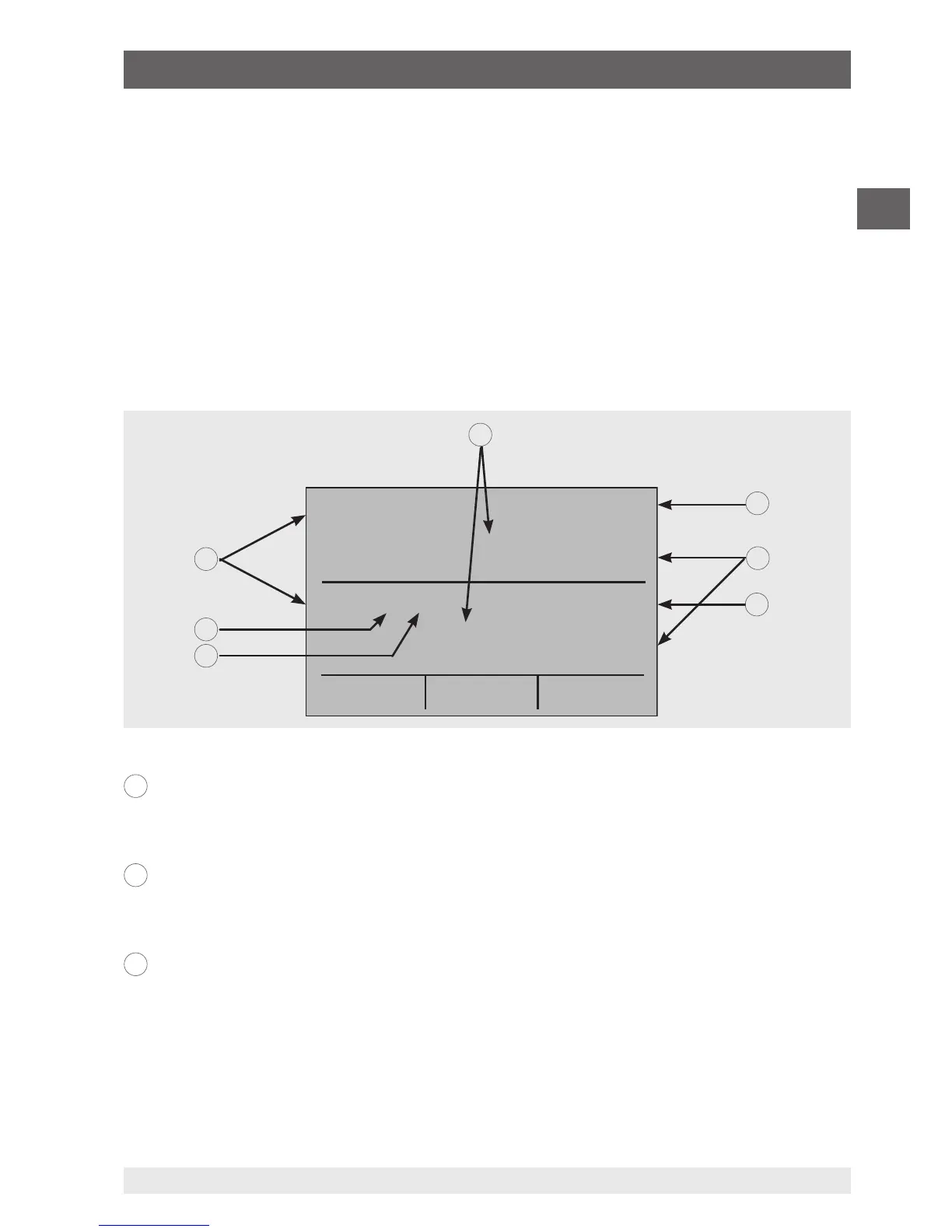 The display of the multi-function calibrator is subdivided into 3 main sections: the upper