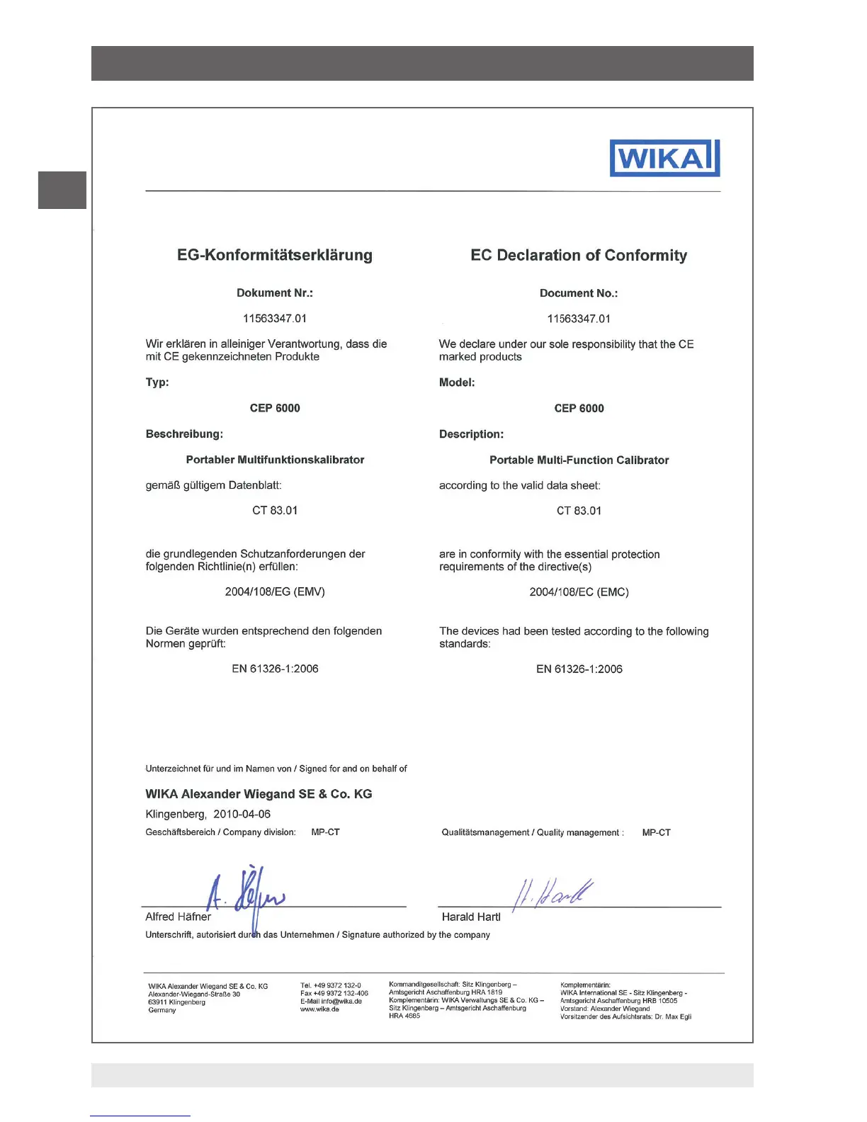 WIKA CEP6000 - Appendix: EC Declaration of Conformity
