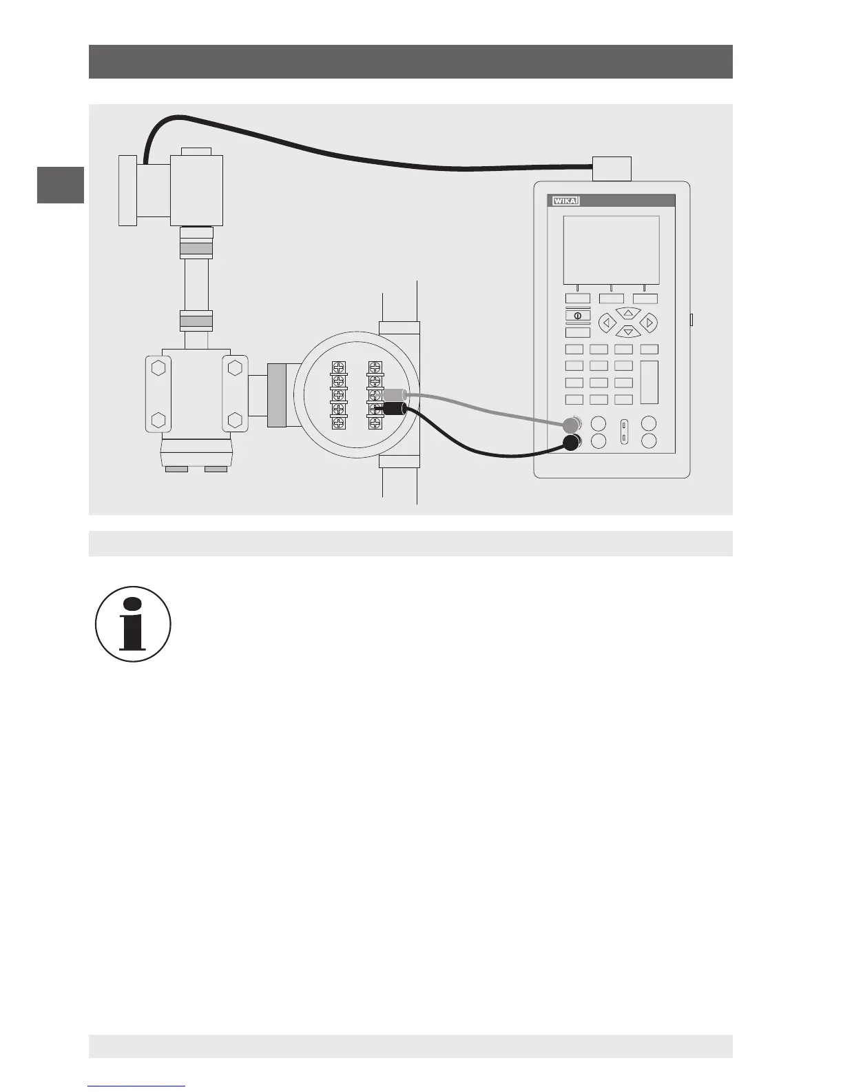 5. 将校准仪的 TC 输出端连接到发射器的 TC 输入端。此外,将校准仪的 mA 输入端连接