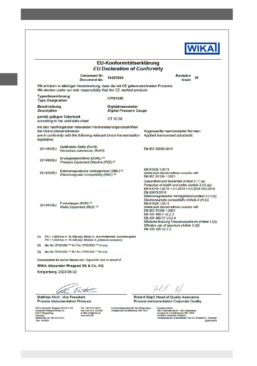 WIKA CPG1200 - Anlage 1: EU-Konformitätserklärung